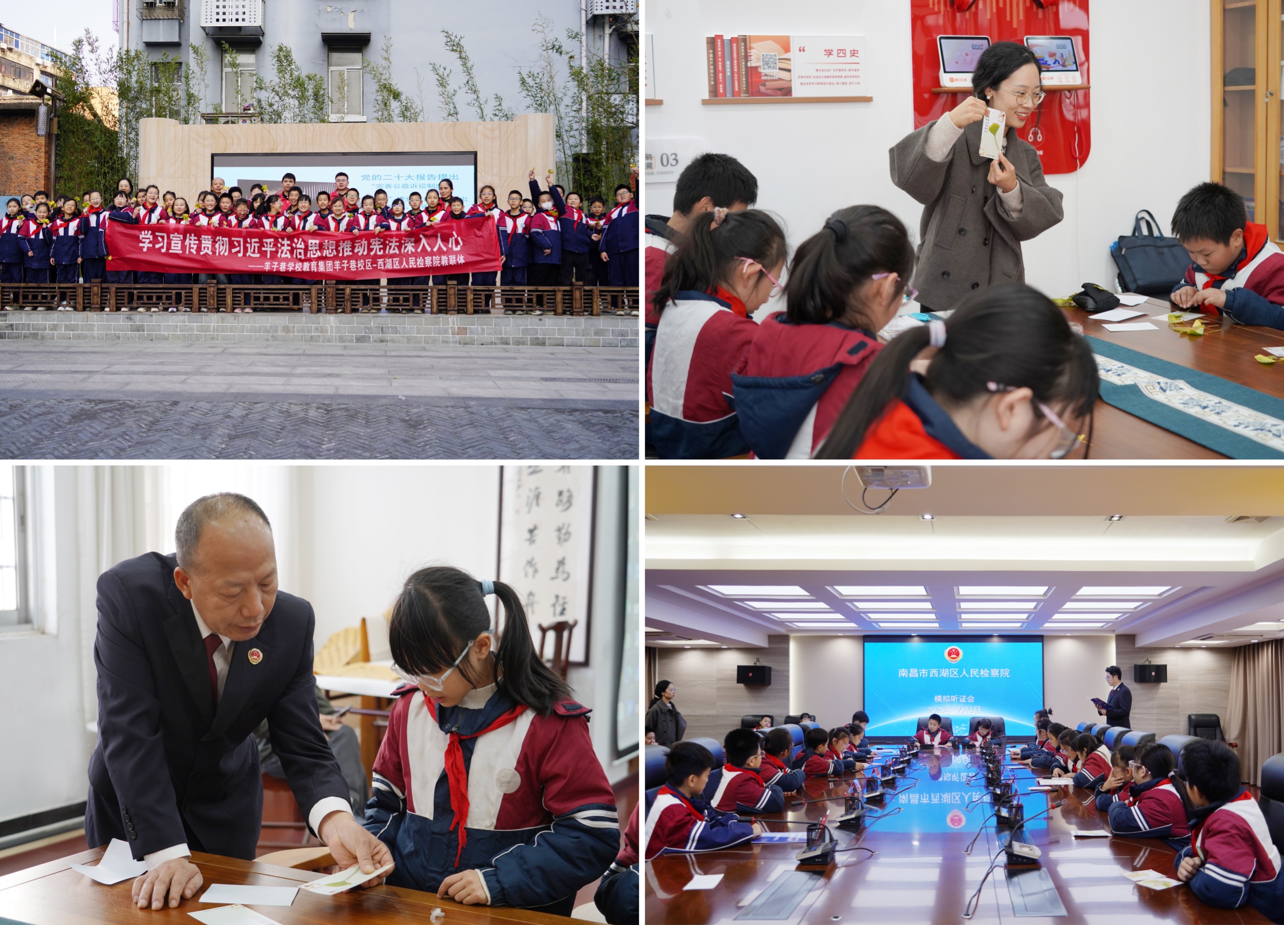 12月3日,西湖区人民检察院的检察官以“学习宣传贯彻习近平法治思想,推动宪法深入人心”为主题举办检察开放日活动,为南昌市羊子巷学校教育集团羊子巷校区的师生们带来沉浸式法治体验。活动中,检察官带领师生一起参观了南昌市检察公益诉讼教育基地,结合千年古树保护等鲜活案例,生动讲解了宪法条款的落地实践。活动还设置了开展模拟听证会、制作法治书签等互动环节,让抽象的法律条文变得可知可感,在青少年心中播下尊法守法的种子,让宪法教育真正“活”了起来。